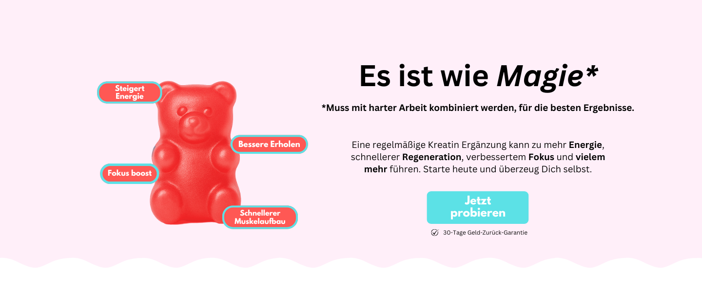 Nimm 5 Gummis täglich, um die vollen Vorteile von 5g Kreatin zu nutzen.